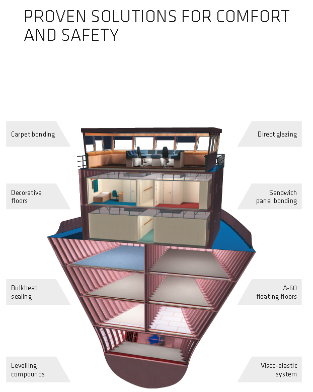 西卡作為世界領(lǐng)先的粘接、密封、阻尼和增強(qiáng)產(chǎn)品開發(fā)公司,是全球海事行業(yè)的供應(yīng)商和合作伙伴,不僅為船舶工業(yè)提供粘接和密封系統(tǒng),還為船舶工業(yè)提供一系列聲學(xué)和地板系統(tǒng)。西卡在所有造船國家都有自己的子公司,因此無論客戶在哪里,西卡都能確保一流的訂單處理、交付、應(yīng)用開發(fā)、技術(shù)和商業(yè)支持。